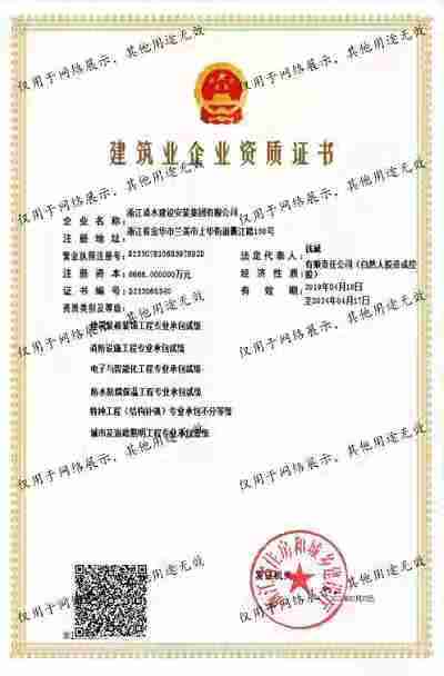 浙江清水建設(shè)安裝集團(tuán)有限公司成立于2013年,注冊(cè)資金6688萬(wàn)元。集團(tuán)具有消防設(shè)施工程專(zhuān)業(yè)承包壹級(jí)、城市與道路照明專(zhuān)業(yè)承包壹級(jí)、電子與智能化專(zhuān)業(yè)承包壹級(jí)、建筑裝飾裝修專(zhuān)業(yè)承包貳級(jí)、防水防腐保溫專(zhuān)業(yè)承包貳級(jí)、市政工程施工總承包貳級(jí)、機(jī)電工程施工總承包貳級(jí)、建筑工程施工總承包貳級(jí)、電力工程施工總承包貳級(jí)、機(jī)電工程專(zhuān)業(yè)承包貳級(jí)、環(huán)保工程專(zhuān)業(yè)承包貳級(jí)、古建筑工程專(zhuān)業(yè)承包貳級(jí)、特種工程結(jié)構(gòu)補(bǔ)強(qiáng)專(zhuān)業(yè)承包、建筑施工勞務(wù)作業(yè)專(zhuān)業(yè)承包(憑建筑業(yè)企業(yè)資質(zhì)證書(shū)經(jīng)營(yíng)